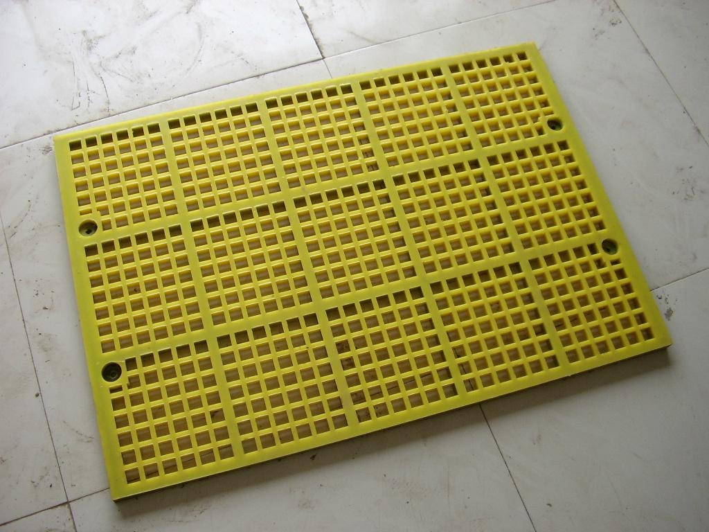 聚胺脂篩板是一種gao分子彈性篩板,它具有優異的耐磨、耐油、耐水解、耐菌、耐老化性能。該篩板不J可大幅度減輕設備重量,降低設備成本,延長使用壽命,而且降低噪音,廣泛應用于礦山、冶金、煤碳、焦炭、洗煤、石油、化工等行業振動篩洗選分ji作業。